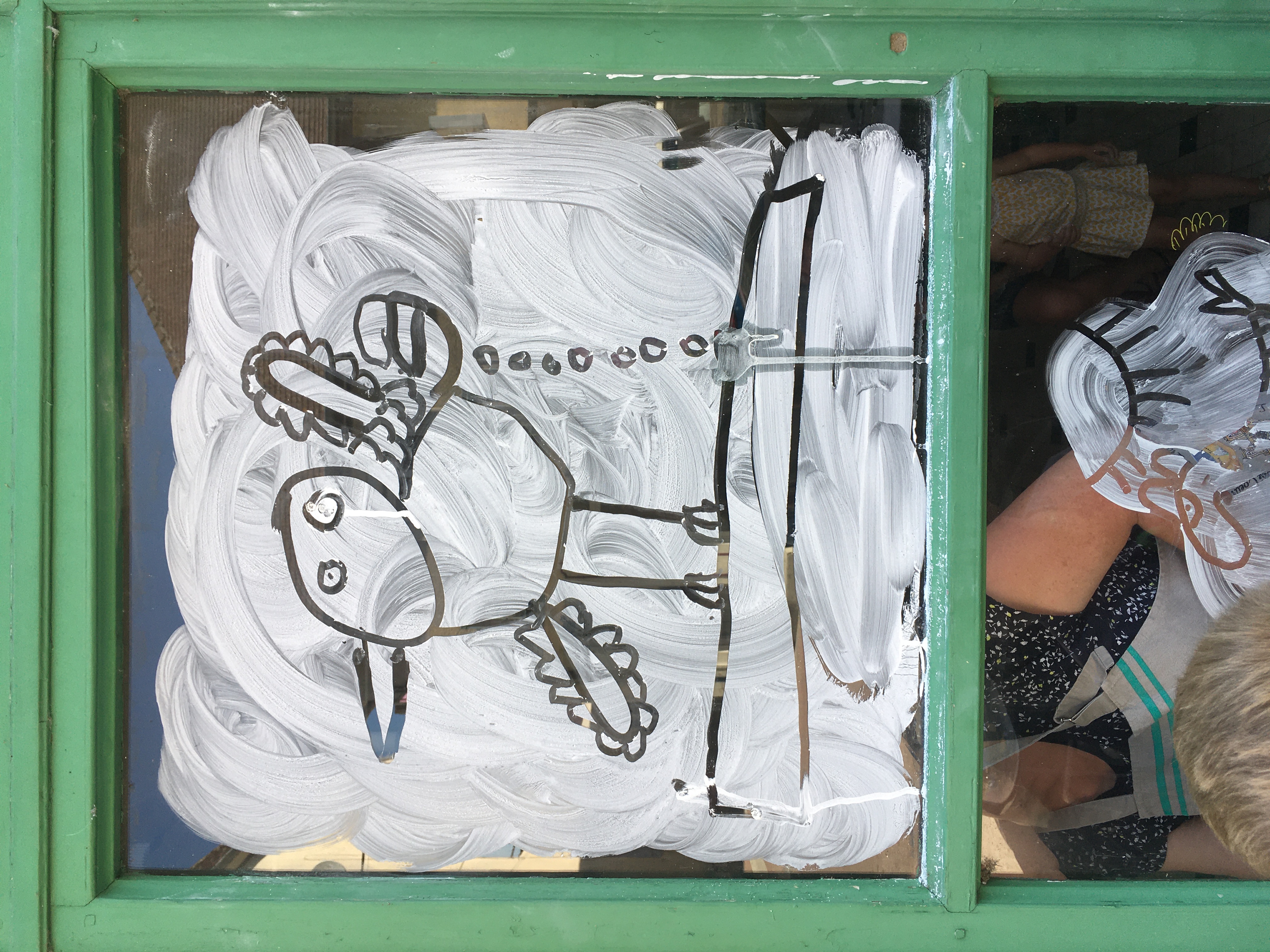 Quatre conteurs guident le public de vitrine en vitrine dessinées à travers les rues, pour leur raconter une histoire énigmatique.